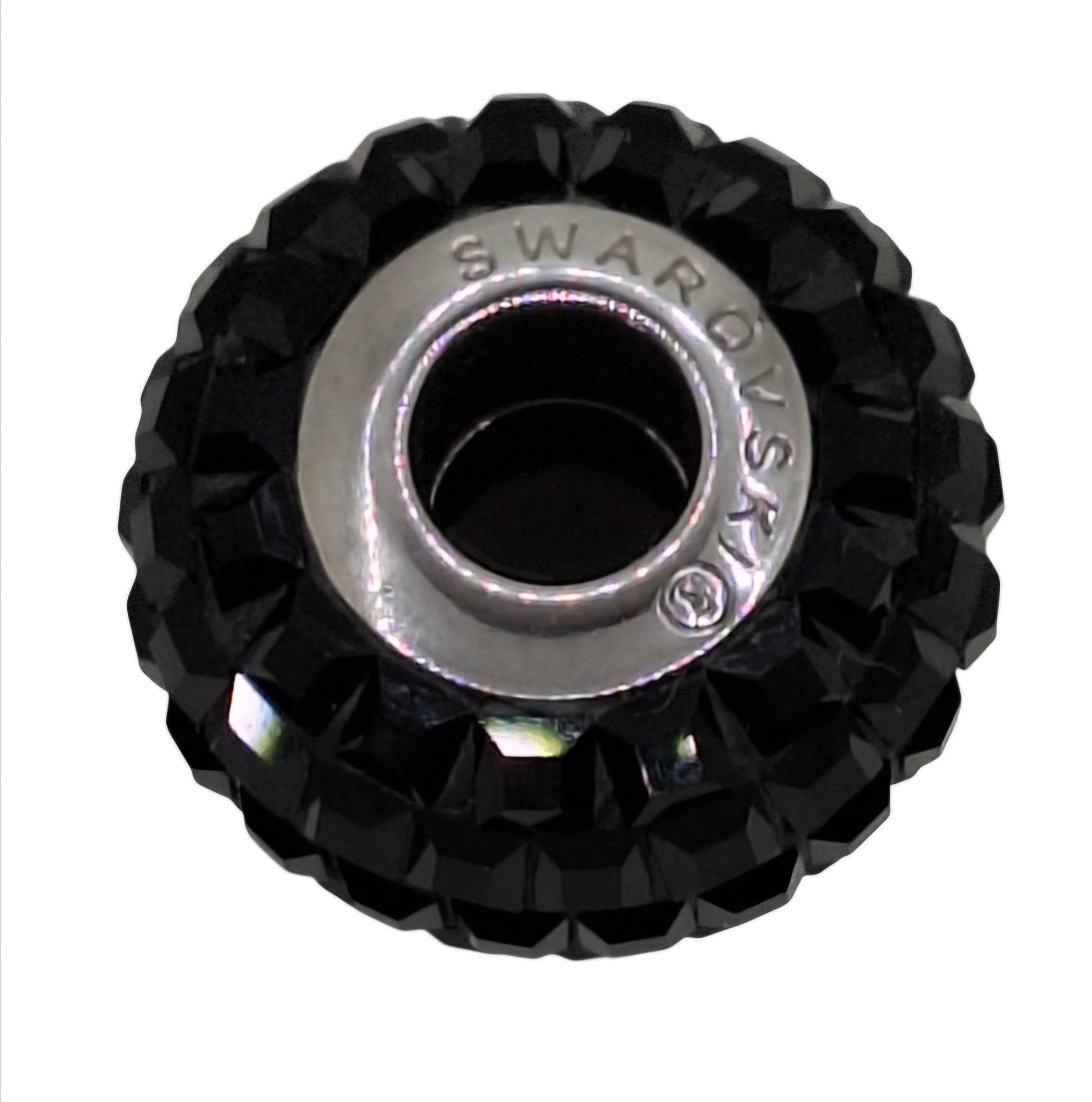 Perle Pavé Swarovski BeCharmed 180201 Jet, large trou en acier inoxydable, compatible bracelets type Pandora.