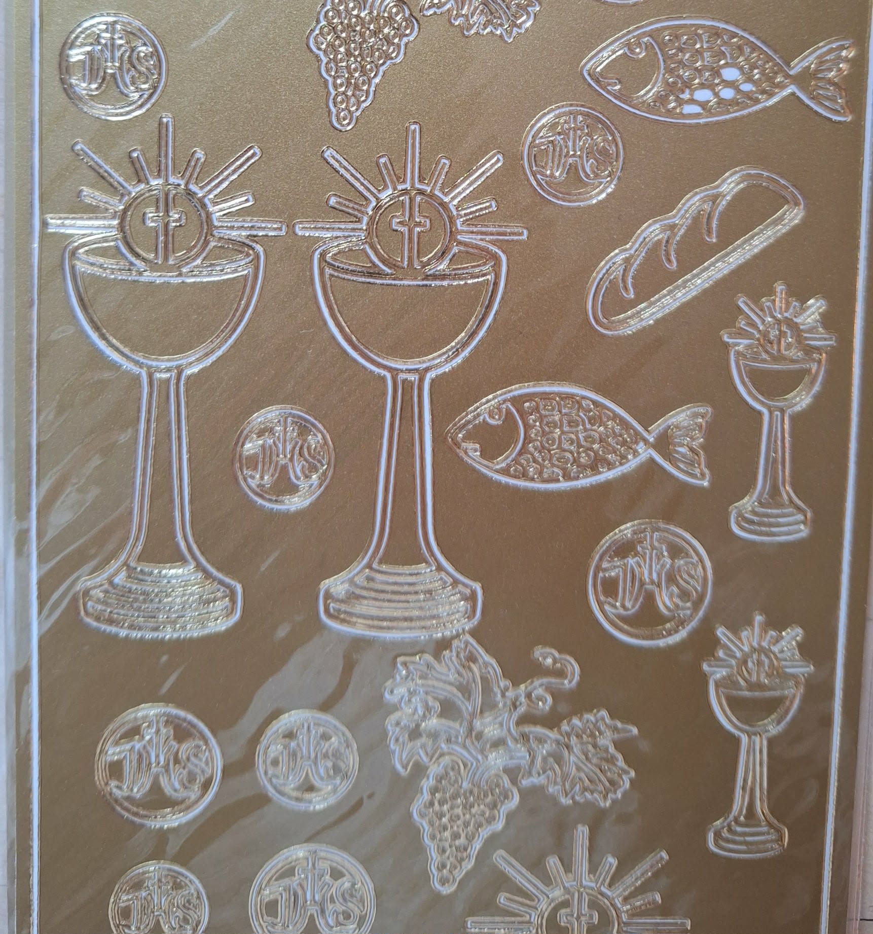 Cette planche de stickers Peel Off  pour créer des cartes de communion confirmation.
