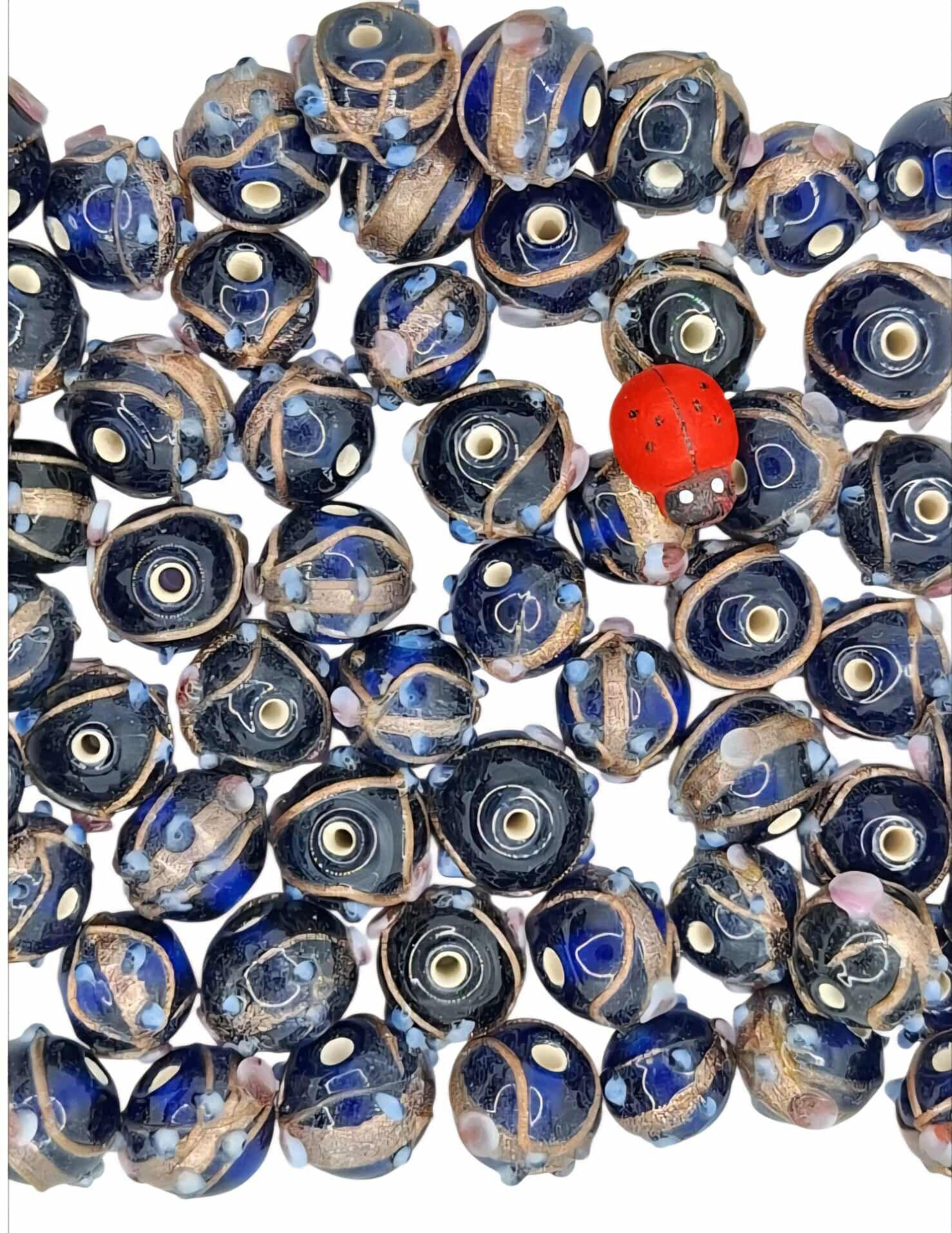 Perles des indes en verres artisanales, rondes bleu marine de 12mm de diam vendues par 20