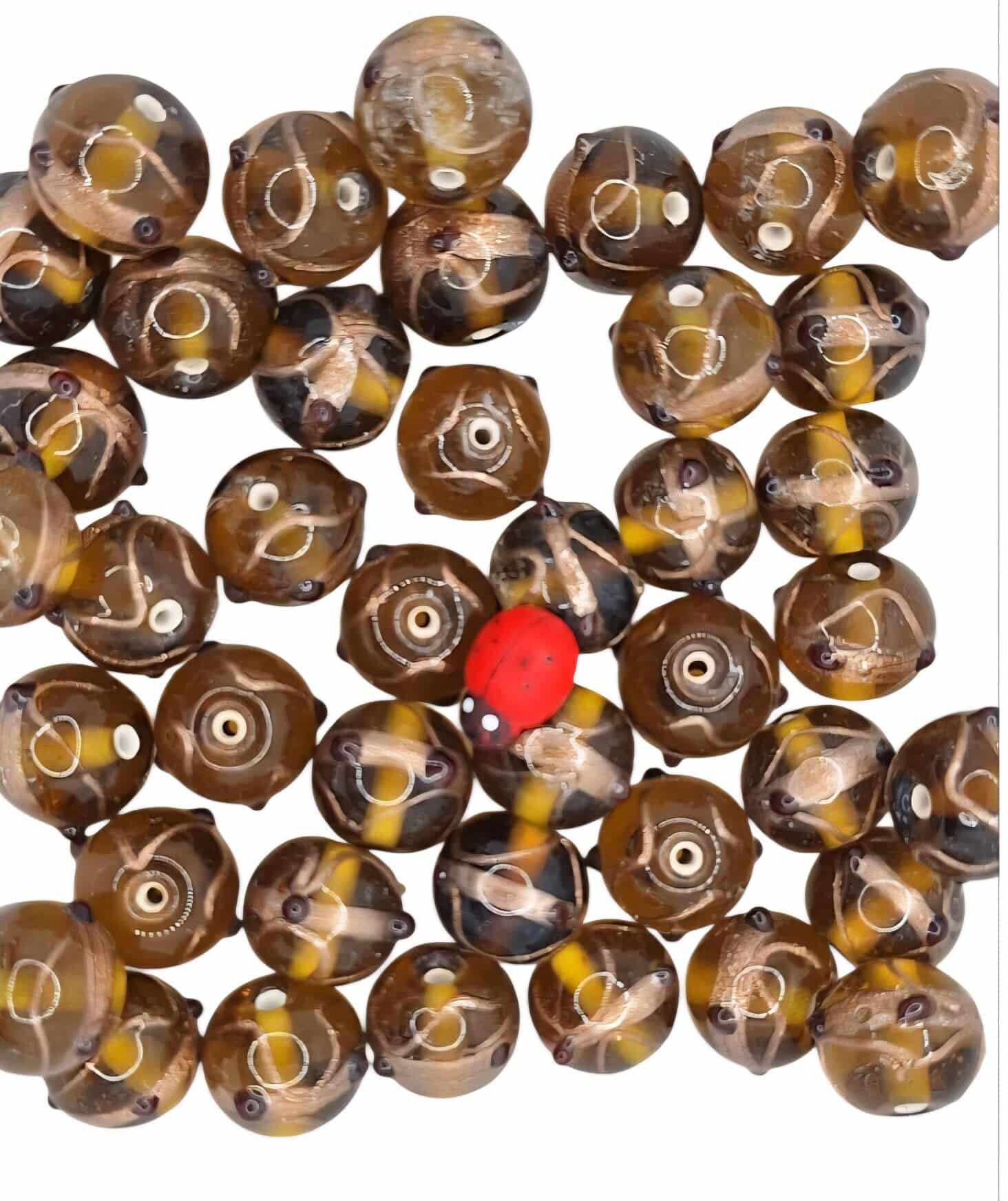 Perles des indes en verres artisanales, rondes topaz de 14mm de diam vendues par 20