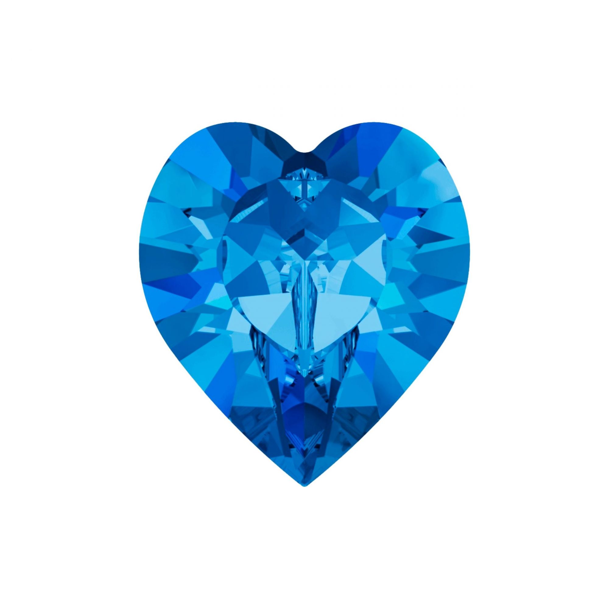 Cabochon cœur Swarovski référence 4800, 10 mm, coloris Sapphire, bleu, en cristal à facettes symétriques avec dos conique type Fancy Stone, destiné au sertissage ou au collage sur support adapté. Il diffuse la lumière, offrant une brillance éclatante une fois intégré dans un bijou ou une création brodée. La forme cœur est particulièrement utilisée pour des bijoux à thème romantique ou symbolique.