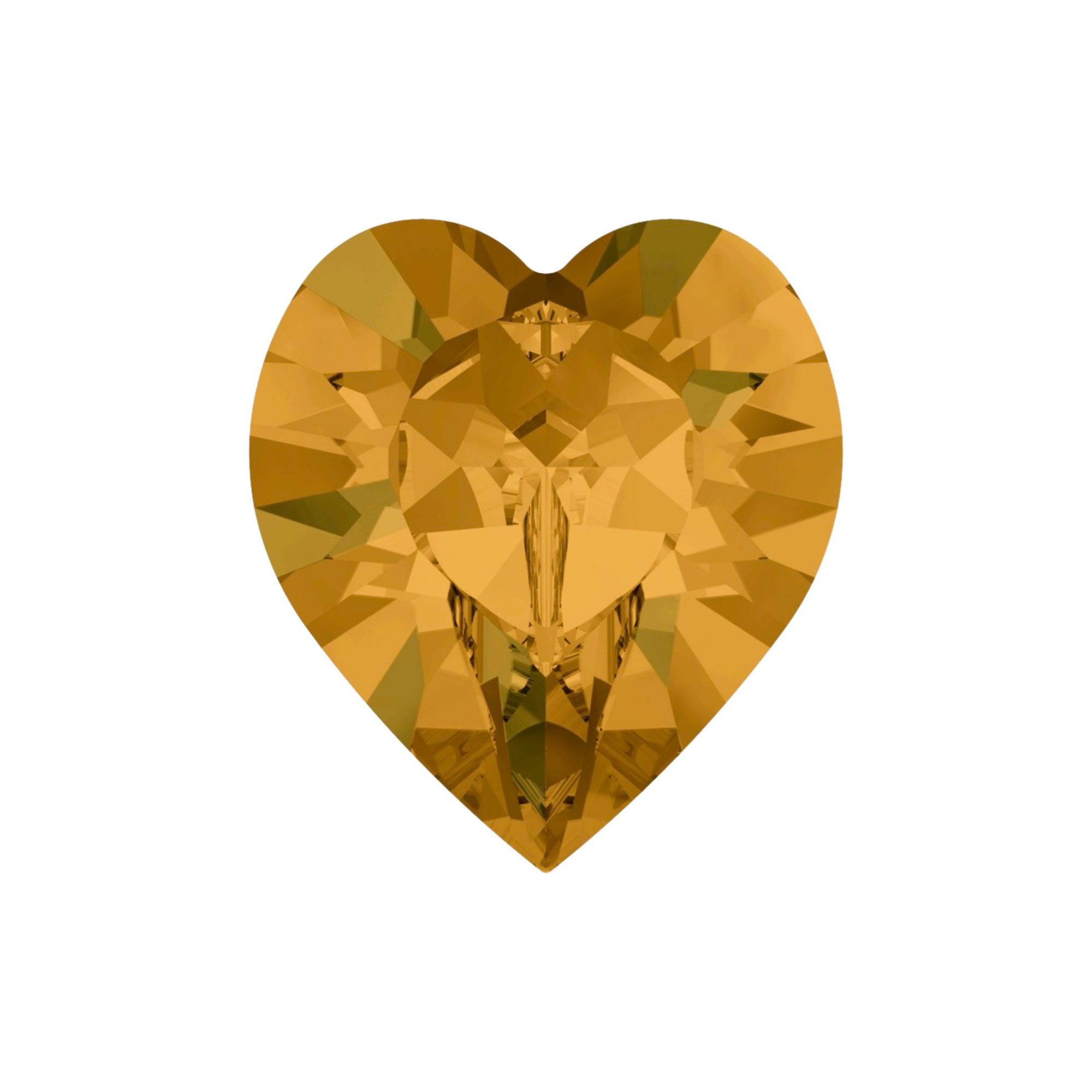 Cabochon cœur Swarovski référence 4800, 10 mm, coloris Topaz, marron, orange, en cristal à facettes symétriques avec dos conique type Fancy Stone, destiné au sertissage ou au collage sur support adapté. Il diffuse la lumière, offrant une brillance éclatante une fois intégré dans un bijou ou une création brodée. La forme cœur est particulièrement utilisée pour des bijoux à thème romantique ou symbolique.