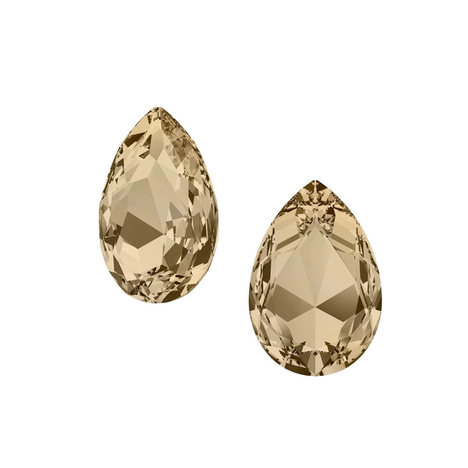 Cabochon poire Swarovski référence 4327 en cristal à facettes avec dos arrondi type Fancy Stone, destiné au sertissage ou à la couture sur support adapté. Son coloris Crystal Golden Shadow diffuse la lumière avec des reflets champagne lumineux, offrant un rendu doux et chaleureux une fois intégré dans un bijou ou une création brodée. La finition Unfoiled laisse passer la lumière à travers le cristal, accentuant la transparence et les effets de brillance selon le support utilisé.