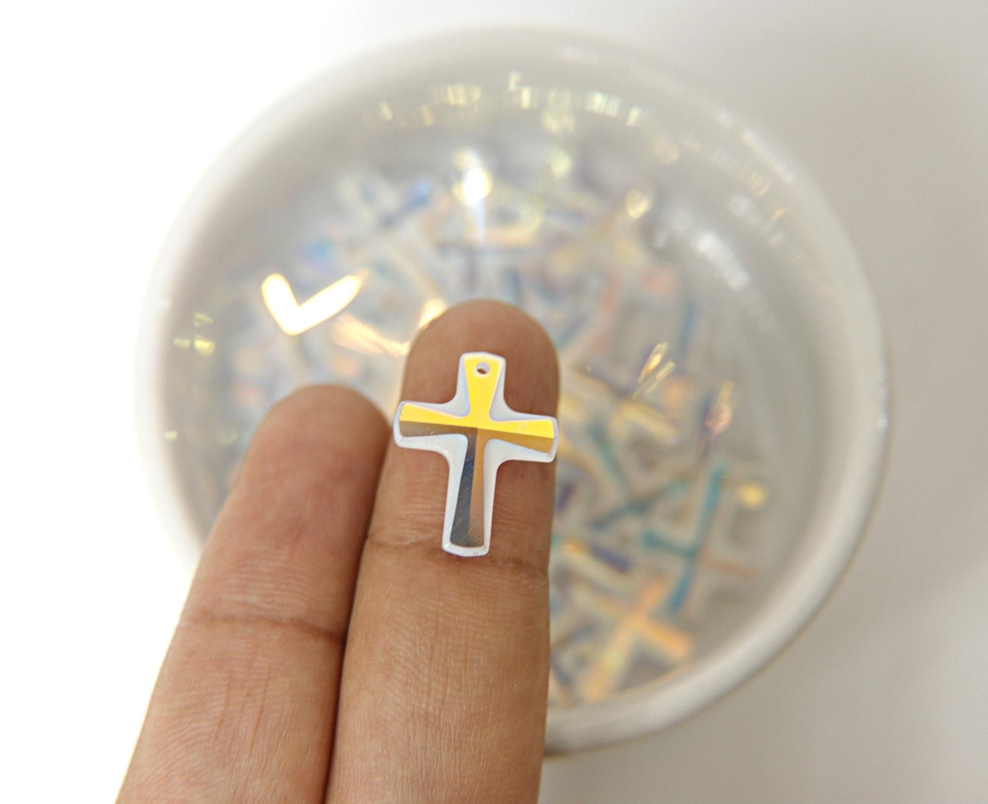 Cette croix 6860 20 mm Crystal AB en cristal Swarovski, transparent irisé, apporte une brillance lumineuse à vos créations grâce à ses facettes et à son effet Aurora Borealis.