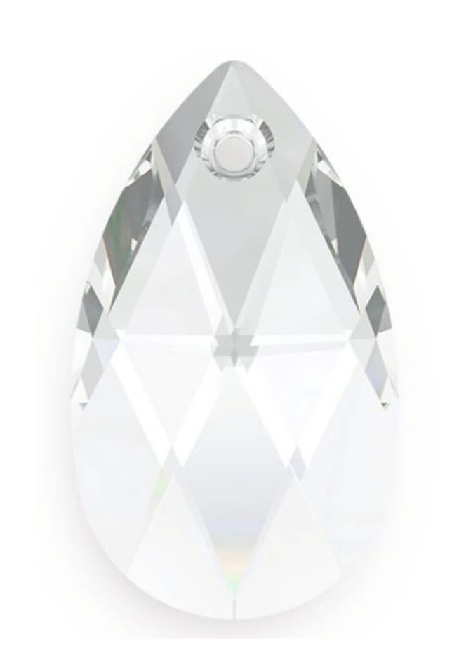 Larme 6100 cristal Swarovski, 24 mm, coloris Crystal, transparent. Le cristal apporte une belle brillance au bijou fini et met en valeur la forme effilée au porté. Percée en haut pour le monter sur anneau ou bélière, puis sur chaîne, collier ou boucles d’oreilles pendantes.