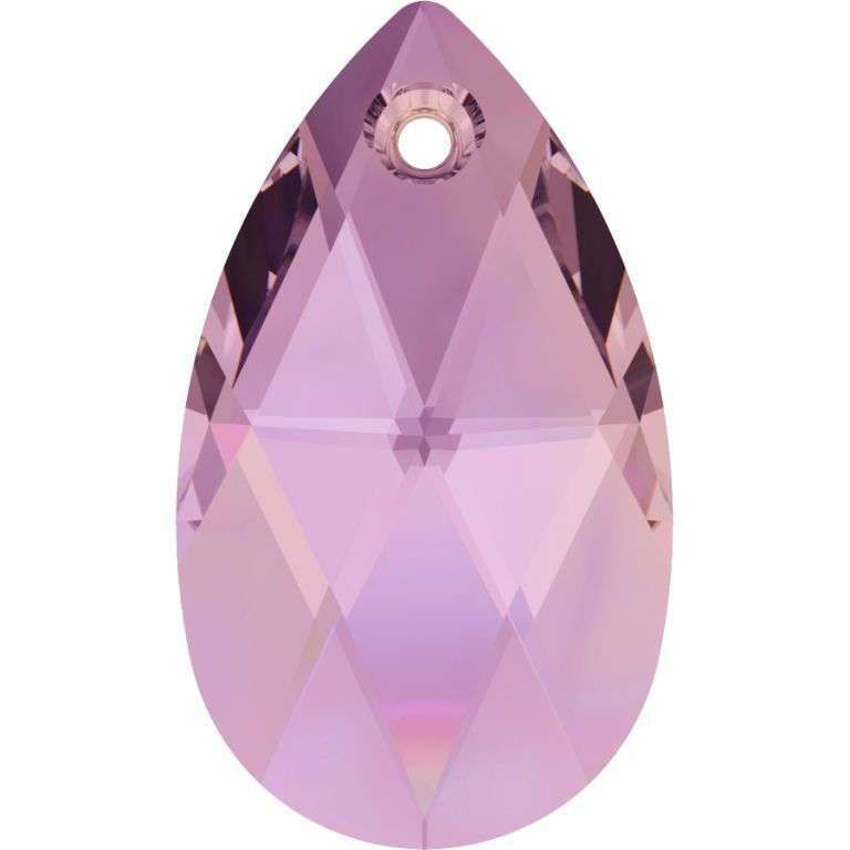 Larme 6106 cristal Swarovski, 22 mm, coloris Crystal Lilac Shadow, lilas irisé. Son effet apporte une brillance marquée avec reflets violine changeants au bijou fini. Percée en haut pour le monter sur anneau ou bélière, puis sur chaîne, collier ou boucles d’oreilles pendantes.