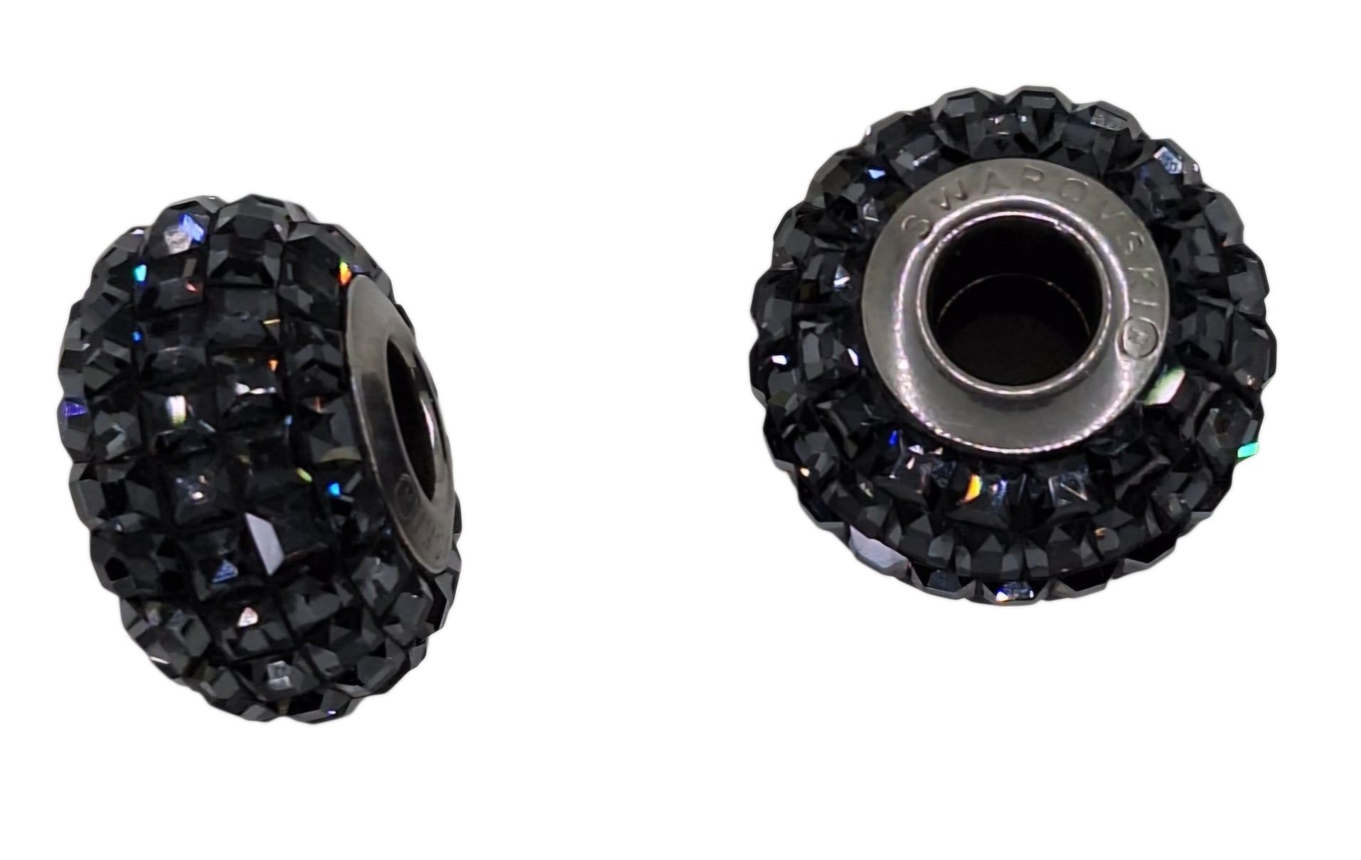 Perle Pavé Swarovski BeCharmed 180201 Crystal Silver Night, large trou en acier inoxydable, compatible bracelets type Pandora.