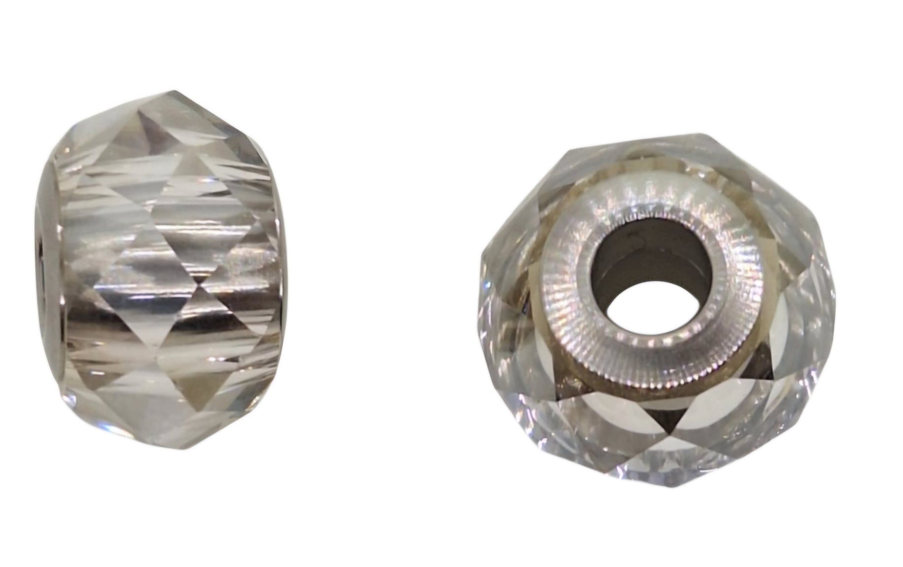 Perle Pavé Swarovski BeCharmed 5940 crystal silver shade, large trou en acier inoxydable, compatible bracelets type Pandora.
