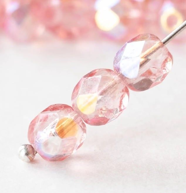 Perles facettes 4mm rose clair ab pour créatrice de bijoux
