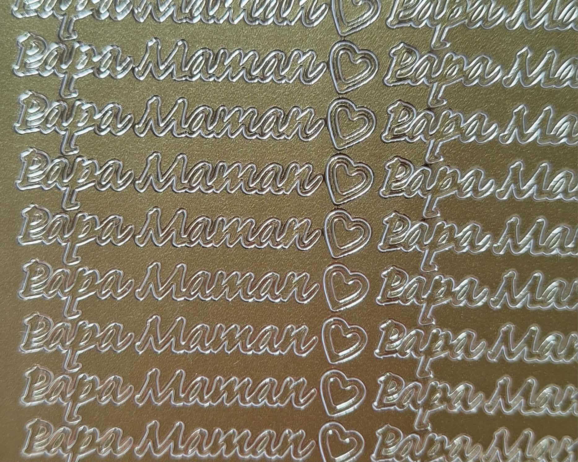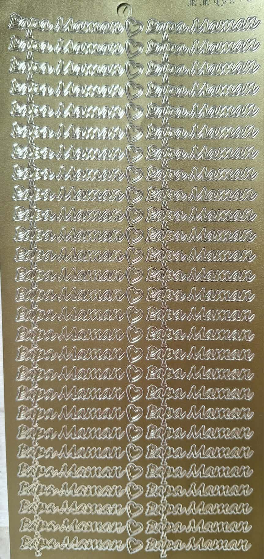 Planche de stickers autocollants peel 108 mots papa maman dorés