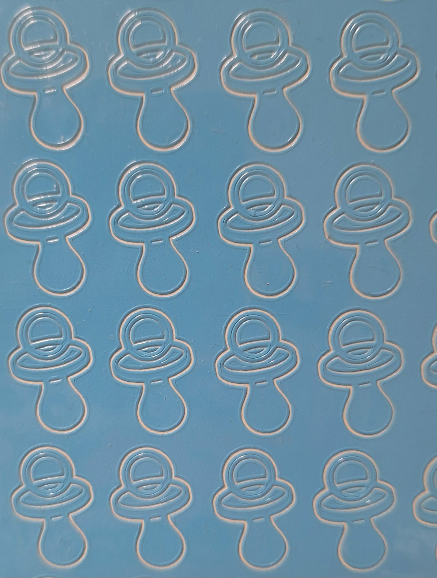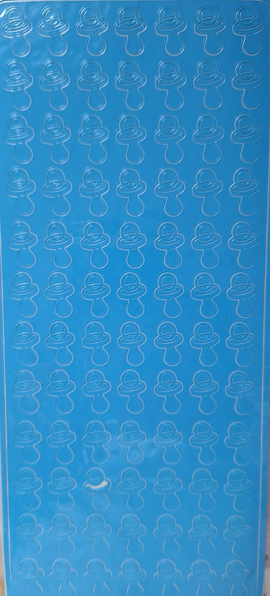 Cette planche de stickers Peel Off est composée de 84 tétines bleues pour créer des cartes de naissance ou baptême.