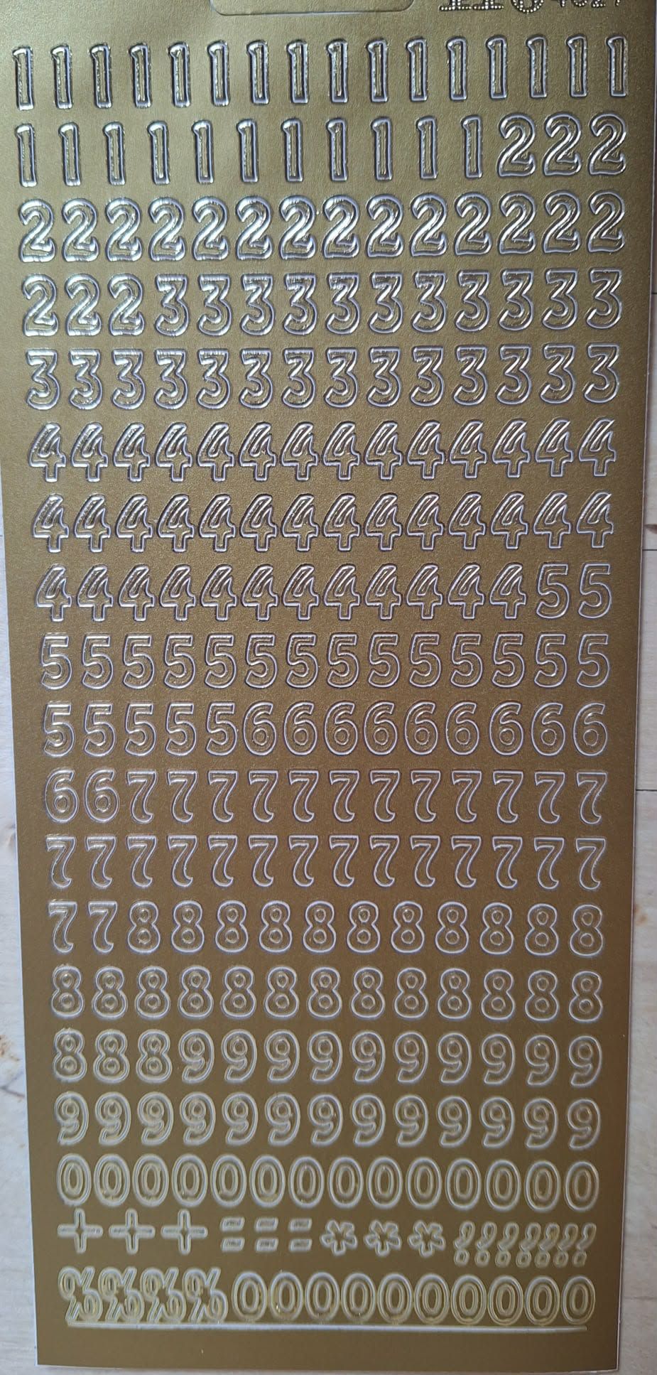 Cette planche de stickers est composée des chiffres adhésifs doré