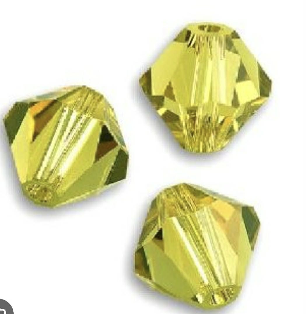 Perles en cristal Swarovski de forme toupie (bicône), diamètre 4 mm. Sa coupe précise et sa finition soignée assurent une excellente régularité et un montage fiable, tout en révélant un éclat lumineux et une brillance raffinée, caractéristiques du cristal Swarovski. Polyvalente, elles s’utilisent dans de nombreuses créations de bijoux, notamment pour la réalisation de bagues, bracelets, colliers et boucles d’oreilles, seules ou associées à d’autres perles en cristal, pour des compositions élégantes et harmonieuses.